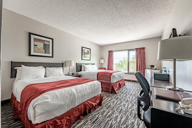All rooms have 2 queen beds, along with a fridge, coffee maker, radio with phone docking station, flat screen TV, bath tub/shower, iron and ironing boards, hair dryer, bathrobes for all registered adults, and include complimentary parking.