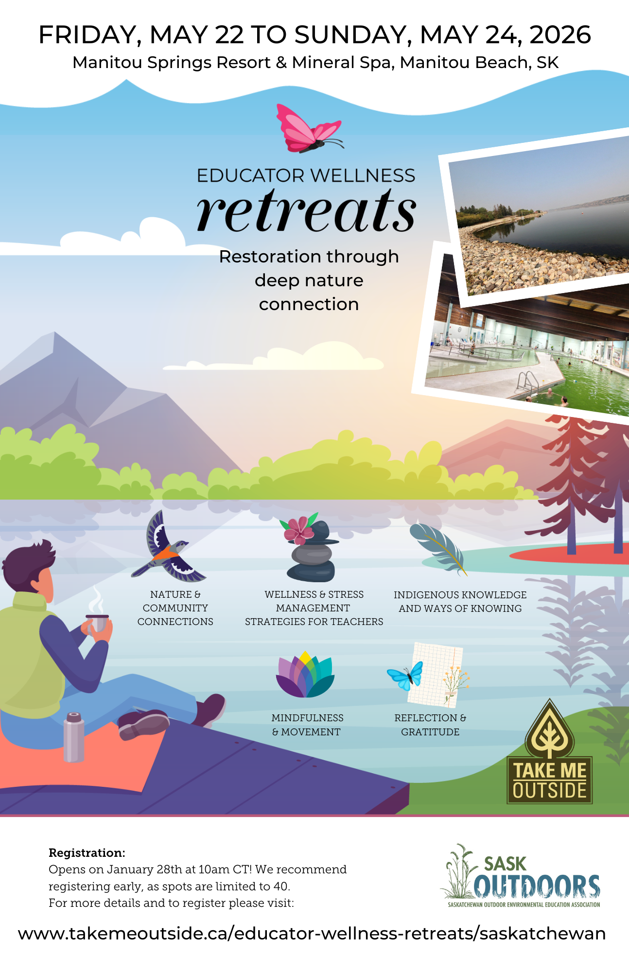 SaskOutdoors helps to connect the people of Saskatchewan to the outdoors and supports educators and caregivers to bring the life-changing benefits of the outdoors to everyone. They have graciously stepped in to help plan, and host, this retreat. To learn more about their work, visit: https://saskoutdoors.org/