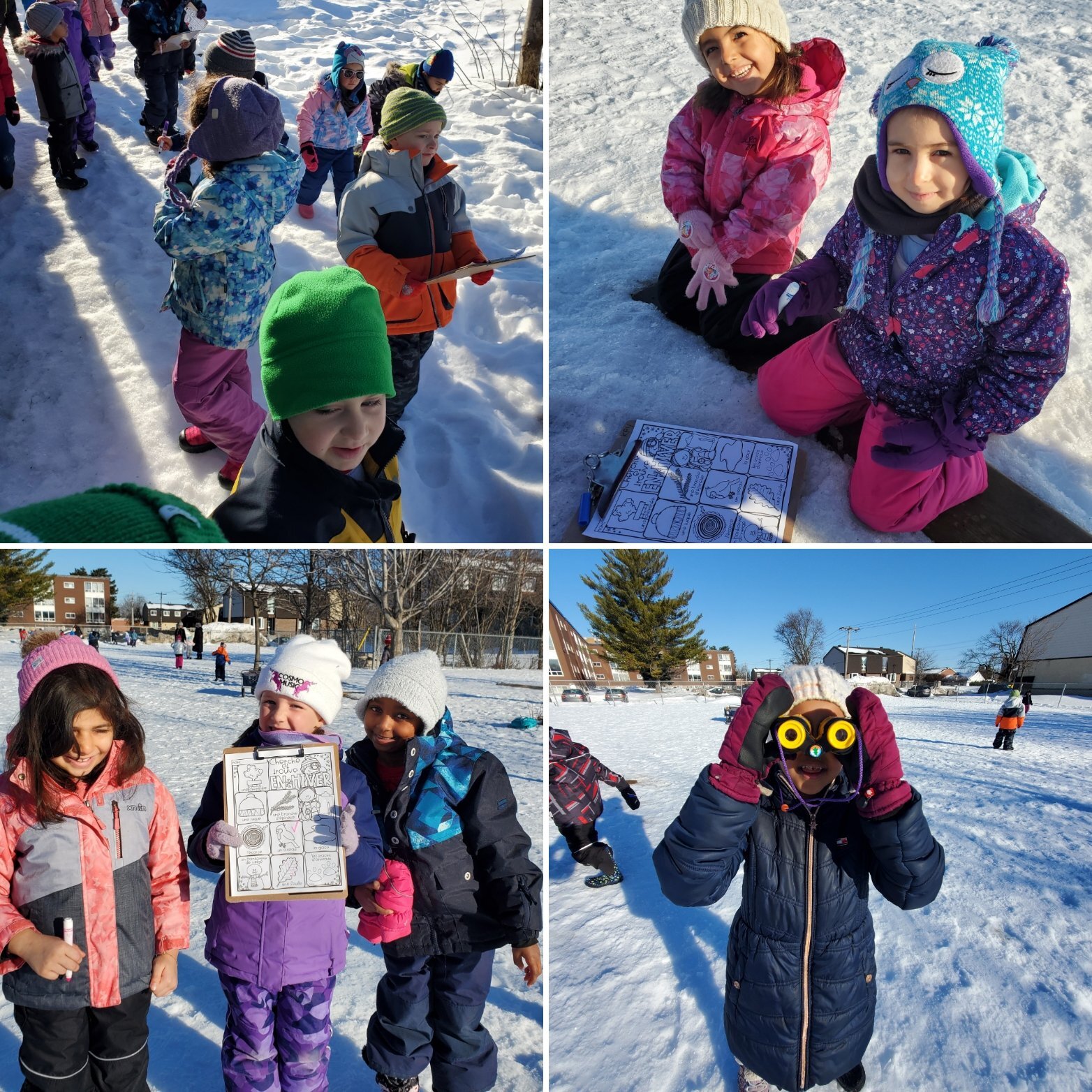 Mme. Tara Vanneste: “Day 2 of the #TMOWinterChallenge was another beautiful day! We did a morning run around the school yard, followed by story time in a circle of trees. Students went on a scavenger hunt and were excited to spot several birds!”